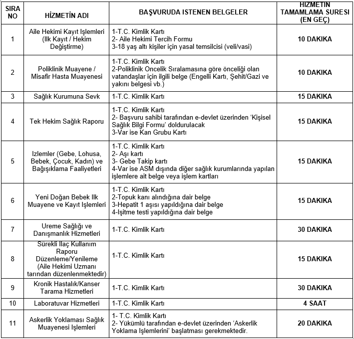 “Başvuru esnasında yukarıda belirtilen belgelerin dışında belge istenmesi, eksiksiz belge ile başvuru yapılmasına rağmen hizmetin belirtilen sürede tamamlanamaması veya yukarıdaki tabloda bazı hizmetlerin bulunmadığının tespiti durumunda ilk müracaat yerine ya da ikinci müracaat yerine başvurunuz.”